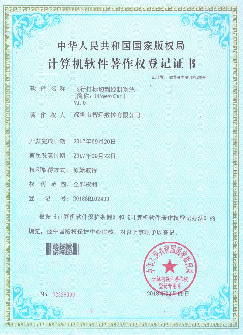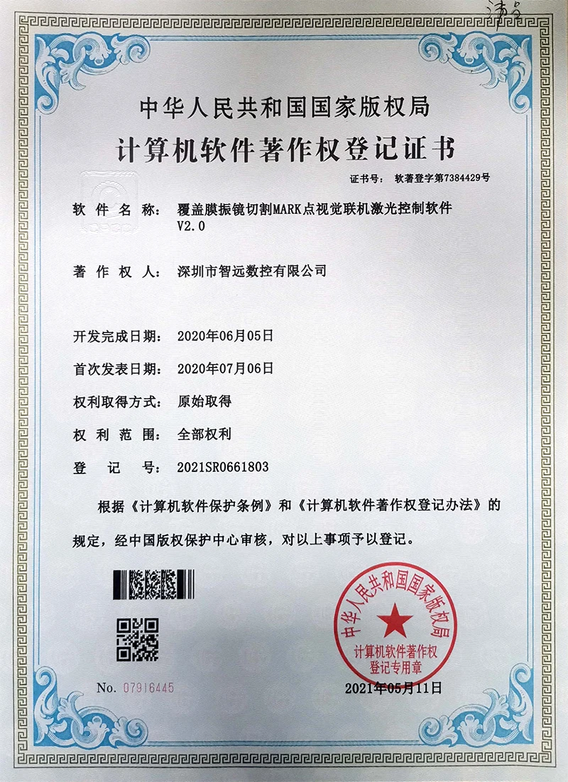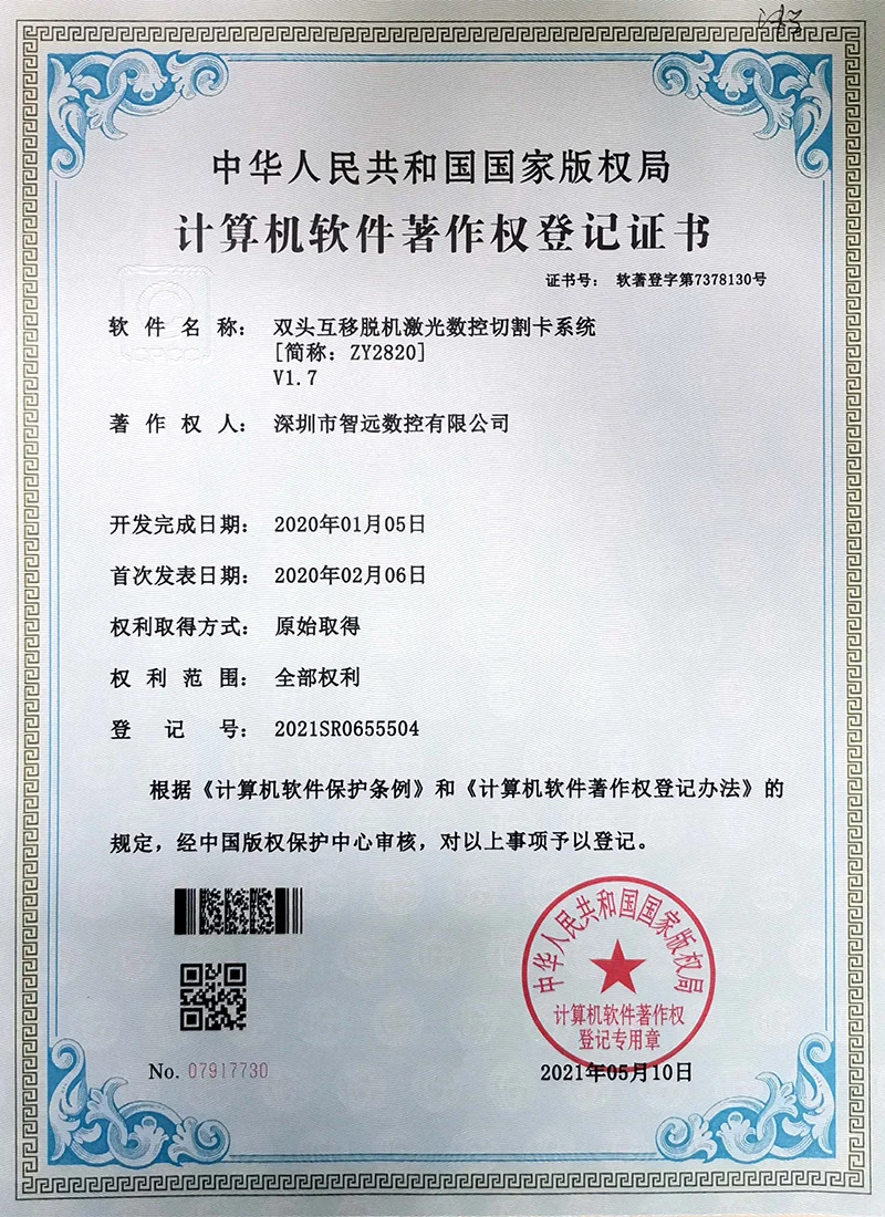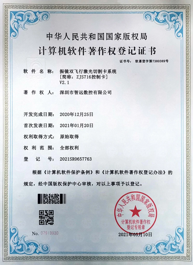 गॅल्व्हानोमीटर स्मॉल व्हिजन ऑनलाइन लेसर कंट्रोल सॉफ्टवेअर; फ्रेम फ्लाइट कटिंग कंट्रोल सिस्टम व्ही 1; लहान व्हिजन लेसर सीएनसी कटिंग कार्ड सिस्टम; मोठ्या व्हिजन लेसर सीएनसी कटिंग कार्ड सिस्टम; कंपन चाकू सिस्टम सॉफ्टवेअर व्ही 2; मल्टी-हेड लेसर कटिंग कंट्रोल सिस्टम; इंटरनेट ऑफ थिंग्ज 4 जी पोझिशनिंग सिस्टम; डबल बीम लहान कॅमेरा व्हिजन कंट्रोल सिस्टम; नट लागवड नियंत्रण प्रणाली; डायनॅमिक गॅल्व्हानोमीटर फ्लाइट मार्किंग सॉफ्टवेअर;