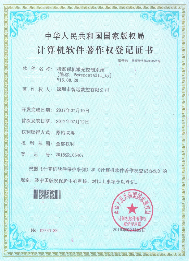 प्रोजेक्शन ऑनलाइन लेसर नियंत्रण प्रणाली; मार्क पॉइंट व्हिजन ऑनलाईन लेसर कंट्रोल सॉफ्टवेअर; गॅल्व्हनोमीटर ड्युअल फ्लाइट ऑफलाइन नियंत्रण प्रणाली; कंपन चाकू नियंत्रण कार्ड सिस्टम व्ही 2; स्मॉल व्हिजन ऑनलाईन ऑटोमॅटिक स्क्रू लॉकिंग मशीन कंट्रोल कार्ड सिस्टम व्ही 12; विंडो पेपर मशीन सिस्टम; झियुआन गॅल्व्हानोमीटर लेसर कटिंग सिस्टम सॉफ्टवेअर; ड्युअल बीम म्युच्युअल मूव्हमेंट कंट्रोल सिस्टम; शेन्झेन झियुआन सीएनसी व्हिज्युअल लेसर कटिंग कंट्रोल सॉफ्टवेअर.